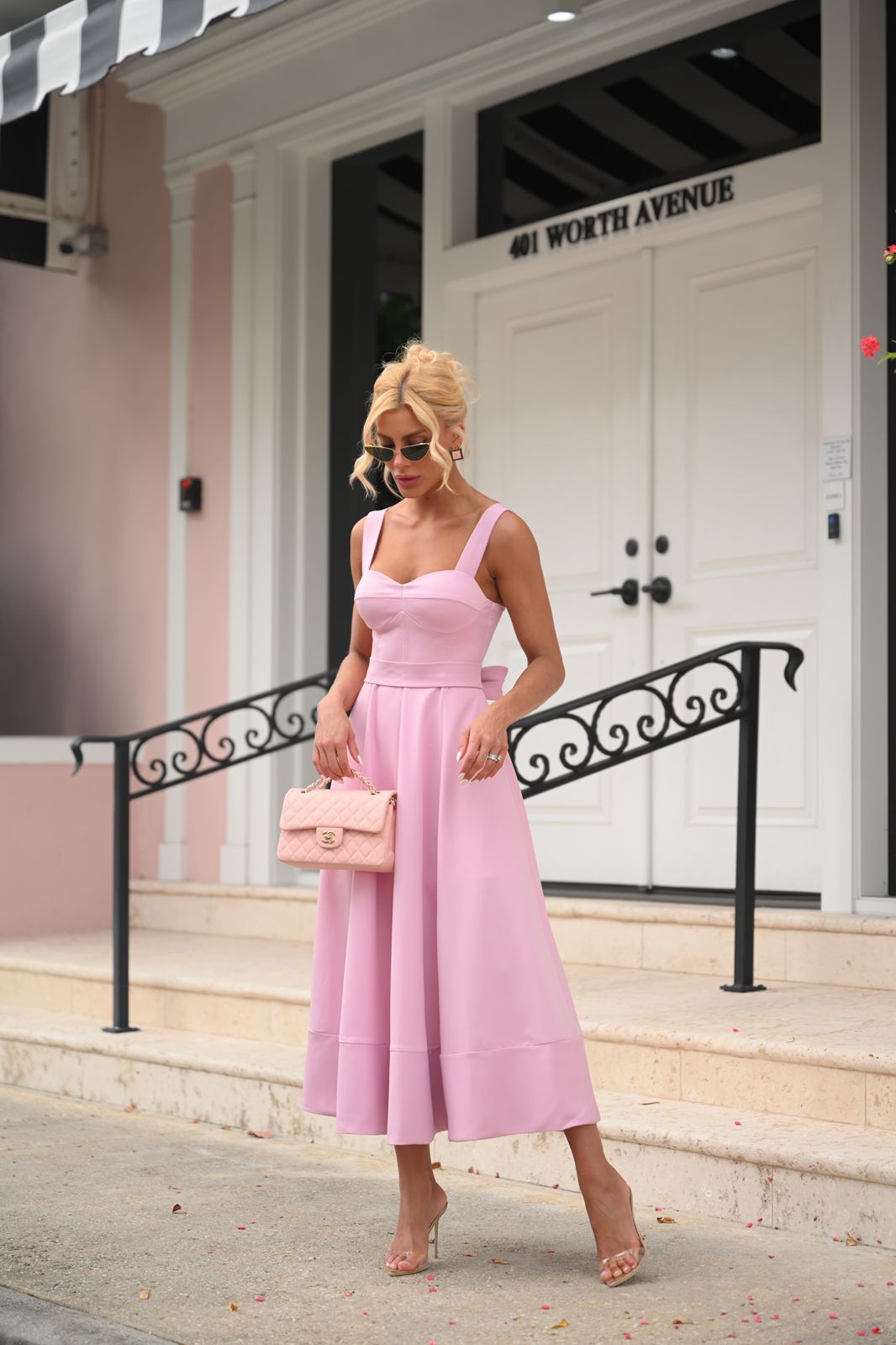 Com silhueta marcada, laço nas costas e saia fluida, esse vestido entrega o equilíbrio perfeito entre feminilidade e frescor. O busto com recorte tipo corset valoriza o colo de forma sutil, enquanto as alças largas e o lastex nas costas garantem conforto e caimento impecável. A saia midi rodada traz leveza ao visual e o zíper de metal nas costas garante um fechamento fácil e seguro.