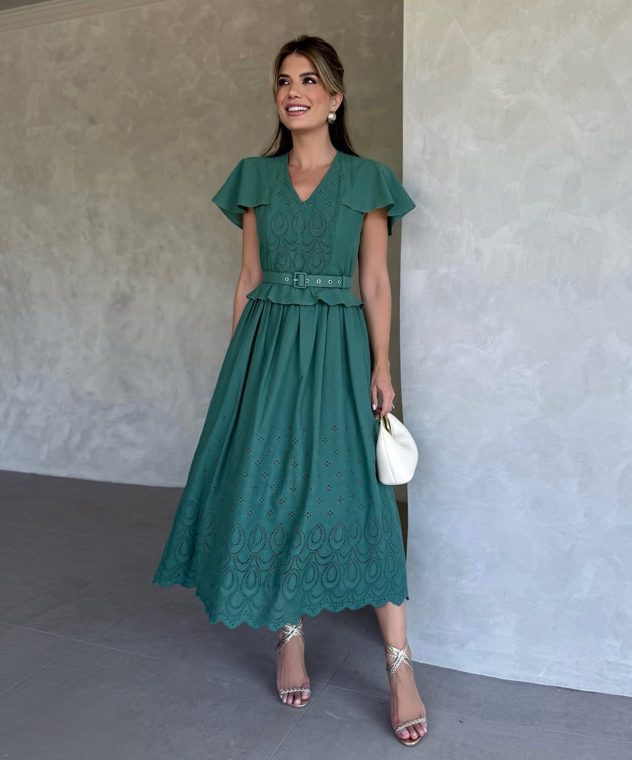 Descubra a sofisticação do VESTIDO VOIL BORDADO COM CINTO, perfeito para quem valoriza elegância aliada ao conforto. Confeccionado em tecido voil de algodão bordado, o modelo traz leveza e toque suave à pele. Sua modelagem evasê e o comprimento midi garantem caimento impecável e versatilidade para diversas ocasiões.